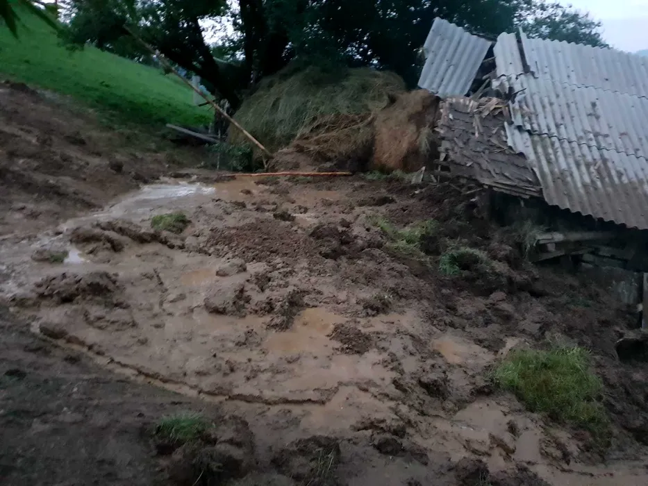 FOTO. Alunecare de teren într-un sat din Braşov: zeci de animale au murit