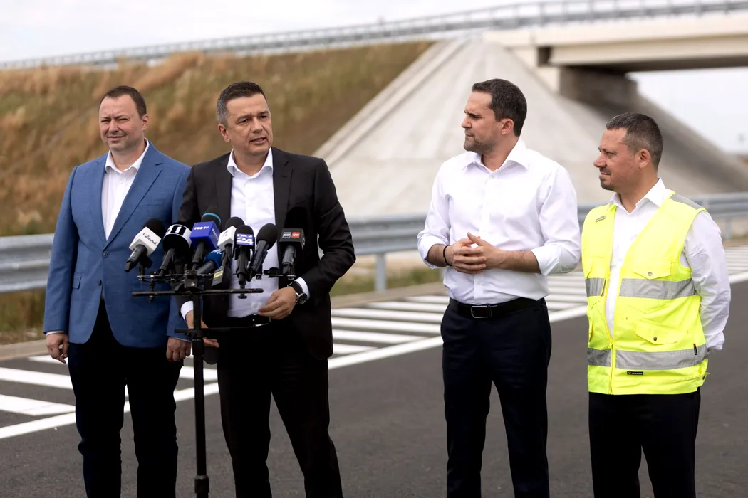 Ministrul Transporturilor si Infrastructurii, Ciprian Serban (CD), si presedintele interimar al PSD, Sorin Grindeanu (CS), sustin declaratii de presa inaintea inaugurarii lotului 3 al autostrazii A0 Sud Bragadiru – Joita, luni, 30 iunie 2025. ALEXANDRA PANDREA/GMN/MEDIAFAXFOTO