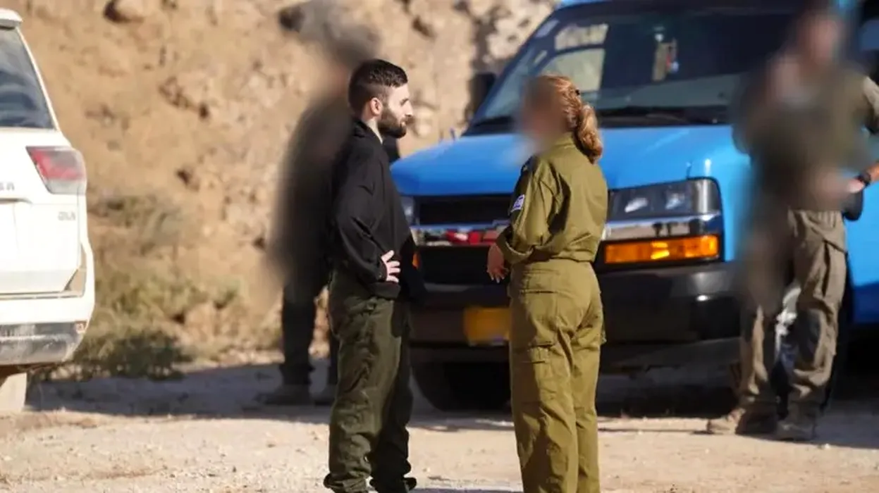 Matan Angrest vorbește cu un ofițer al Armatei Israeliene după eliberarea sa