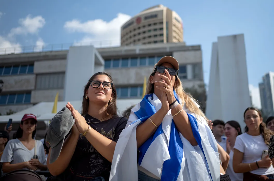 13 October 2025, Israel, Tel Aviv: People gather at the hostage square in Tel Aviv ahead of the hostage release in Gaza. All remaining living hostages held by Hamas in the Gaza Strip have been freed after 738 days in captivity, Israeli media reported on Monday. Photo: ILIA YEFIMOVICH/dpa