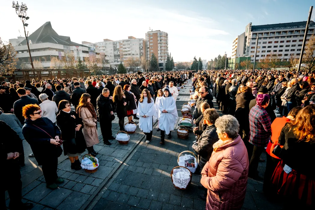 Imagini impresionante la Miercurea Ciuc, unde a avut loc tradiționala sfințire a bucatelor de Paște