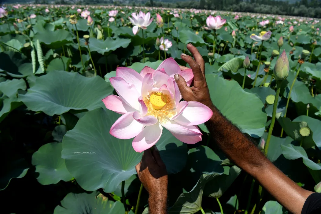 Imagini spectaculoase: florile de lotus ”s-au întors” în Kashmiri, după trei decenii. „Tulpina de lotus leagă hrana noastră de pământ”