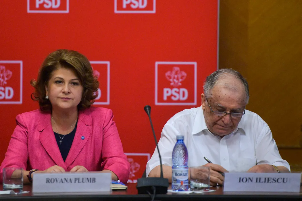 Rovana Plumb si Ion Iliescu participa la sedinta Comitetului Executiv National (CExN) al PSD, miercuri, 22 iulie 2015. Comitetul Executiv National (CExN) al PSD s-a reunit, la Palatul Parlamentului, pentru a lua o decizie privind conducerea interimară a partidului. După demisia lui Victor Ponta din funcţia de presedinte al PSD, interimatul la sefia PSD este asigurat de Rovana Plumb iar Liviu Dragnea si-a anuntat si el candidatura pentru această pozitie în partid. ANDREEA ALEXANDRU / MEDIAFAX FOTO