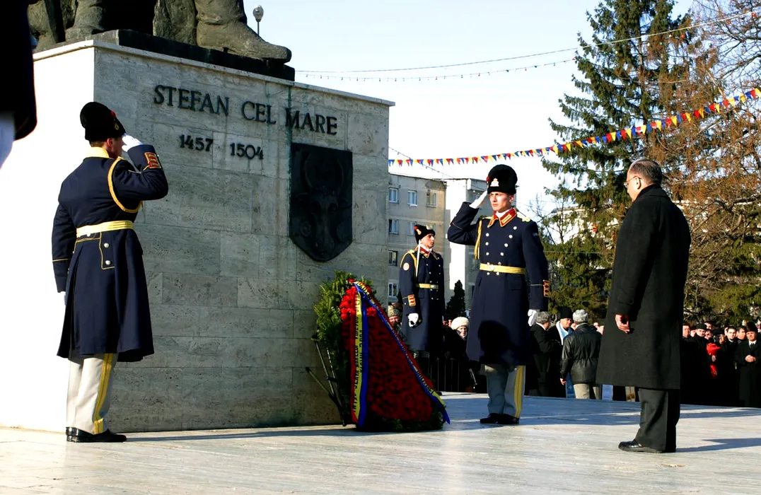 Presedintele Romaniei, Ion Iliescu, a deschis, simbata, la statuia ecvestra a domnitorului Stefan cel Mare, de la Podu Inalt, seria manifestarilor dedicate implinirii a 500 de ani de la moartea domnitorului Moldovei