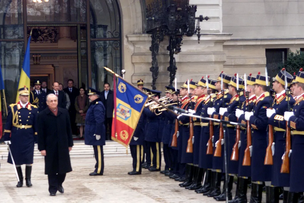 Fostul sef al statului a fost condus pina la iesirea din Palat de actualul presedinte al tarii, Traian Basescu.