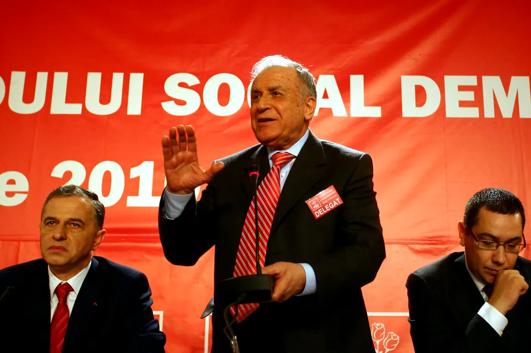 Ion Iliescu participa la Congresul extraordinar al PSD, la Romexpo, in Bucuresti, sambata, 20 februarie 2010. Cei 1.700 de delegati la Congresul extraordinar al PSD de sambata trebuie sa aleaga, prin vot, intre principalii trei candidati la sefia partidului, variantele fiind Victor Ponta, Cristian Diaconescu si Mircea Geoana. THOMAS CAMPEAN / MEDIAFAX FOTO