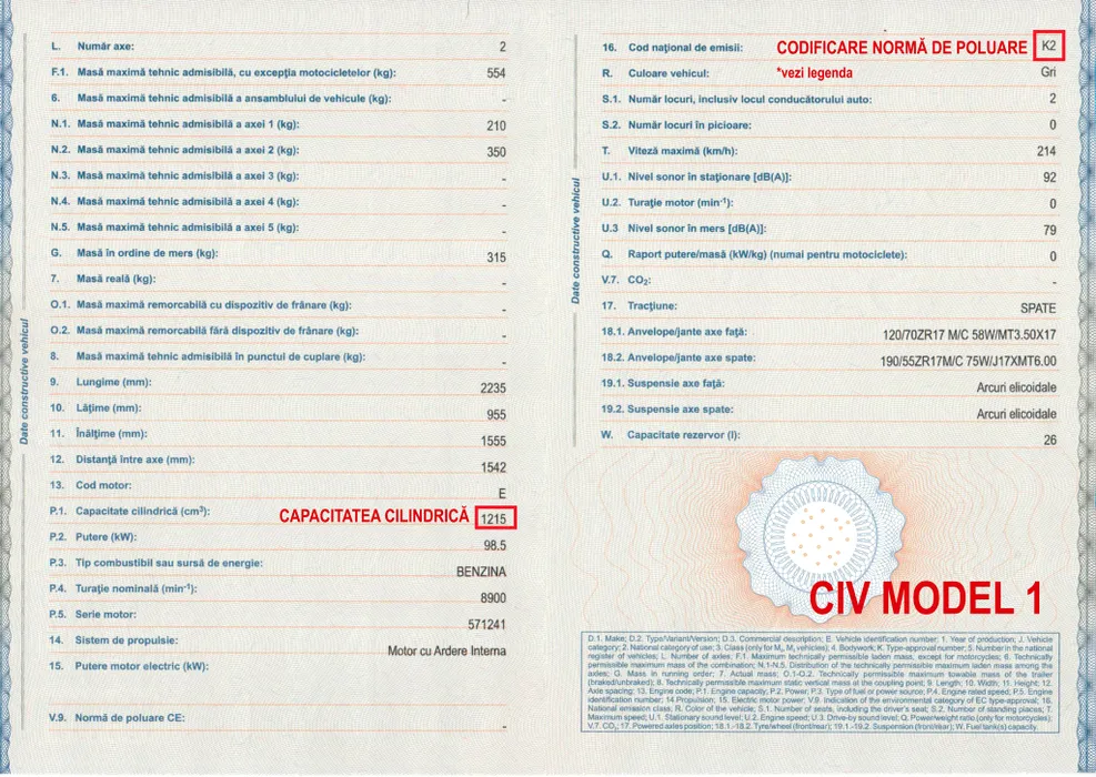 Impozitul auto din 2026: RAR explică unde este trecută norma Euro pe cartea mașinii, în funcție de tipul de CIV