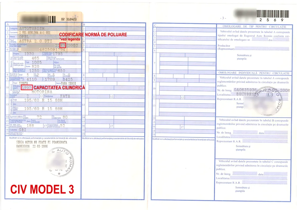 Impozitul auto din 2026: RAR explică unde este trecută norma Euro pe cartea mașinii, în funcție de tipul de CIV