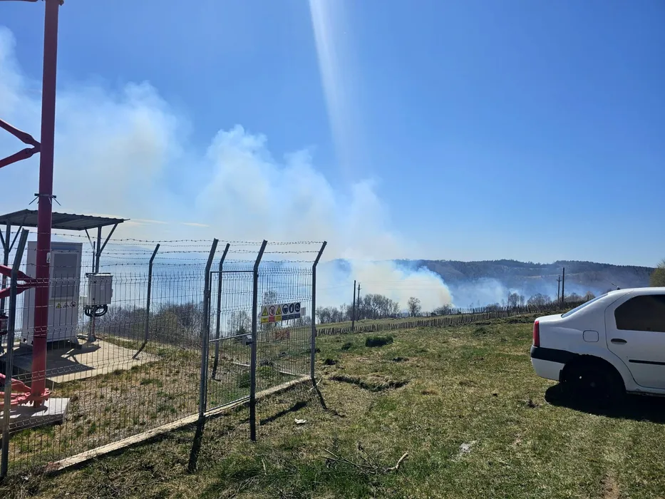 Incendiu de vegetație, întețit în județul Hunedoara din cauza vântului puternic. Pompierii intervin