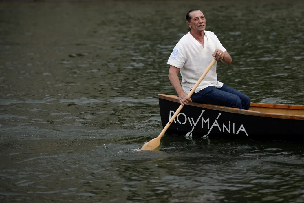 Ivan Patzaichin vasleste in timpul evenimentului "Ocupam Dambovita!", organizat de Asociatia Ivan Patzaichin Mila 23 si SupAcademy România, împreuna cu ARCUB, pe malul raului Dambovita, in Bucuresti, marti, 24 iunie 2014. OCTAV GANEA / MEDIAFAX FOTO