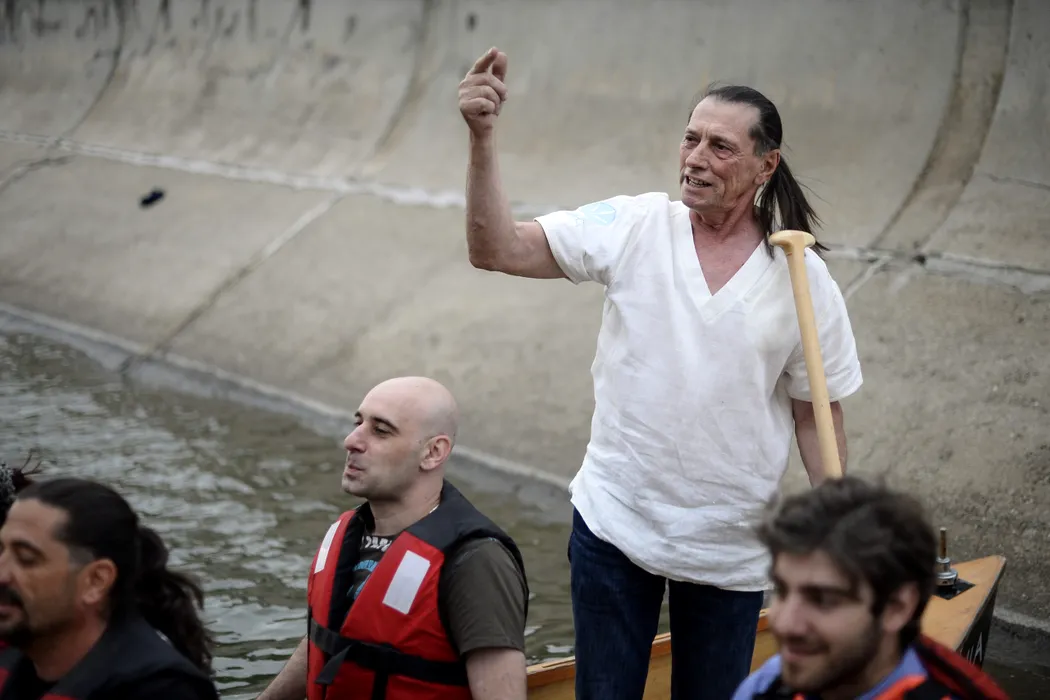 Ivan Patzaichin gesticuleaza, in timpul evenimentului "Ocupam Dambovita!", organizat de Asociatia Ivan Patzaichin Mila 23 si SupAcademy România, împreuna cu ARCUB, pe malul raului Dambovita, in Bucuresti, marti, 24 iunie 2014. OCTAV GANEA / MEDIAFAX FOTO