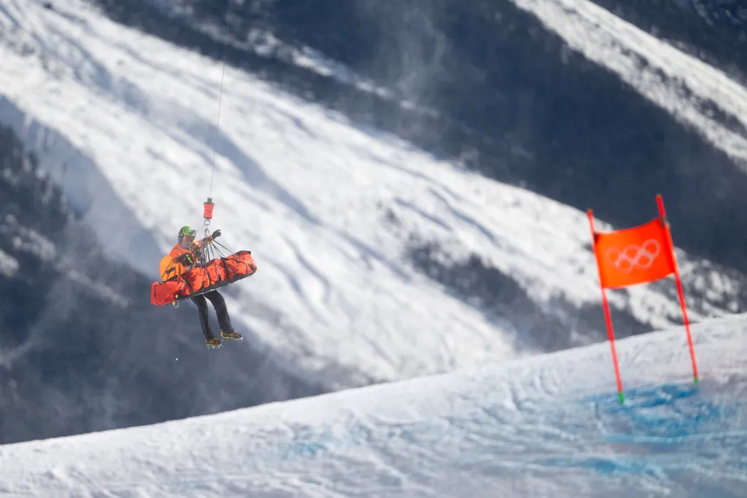 February 8, 2026, Cortina, Italy: 260208 Lindsey Vonn of USA is carried by helicopter during women's alpine skiing downhill during day 2 of the 2026 Winter Olympics on February 8, 2026 in Cortina. (Credit Image: © Joel Marklund/Bildbyran via ZUMA Press)