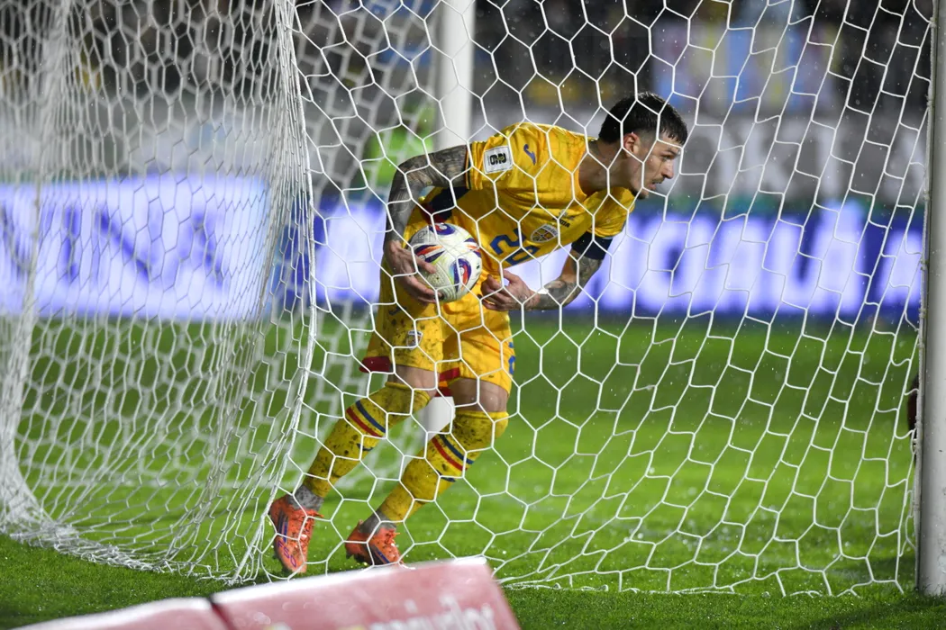 Dennis Man, de la echipa nationala a Romaniei, reactioneaza in timpul meciului de fotbal contra selectionatei statului San Marino din preliminariile Campionatului Mondial 2026, disputat pe stadionul Ilie Oana din Ploiesti, marti, 18 noiembrie 2025. ALEXANDRU DOBRE / MEDIAFAX FOTO