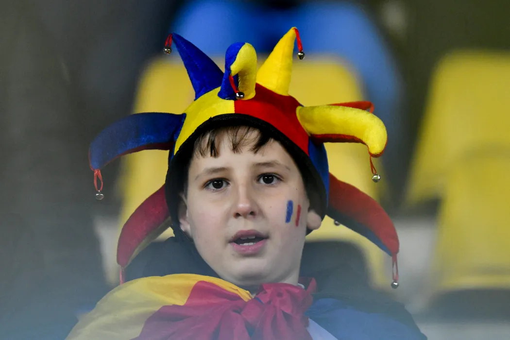 Un copil pictat pe fata asteapta inceperea meciului de fotbal dintre Romania si San Marino din preliminariile Campionatului Mondial 2026, disputat pe stadionul Ilie Oana din Ploiesti, marti, 18 noiembrie 2025. ALEXANDRU DOBRE / MEDIAFAX FOTO