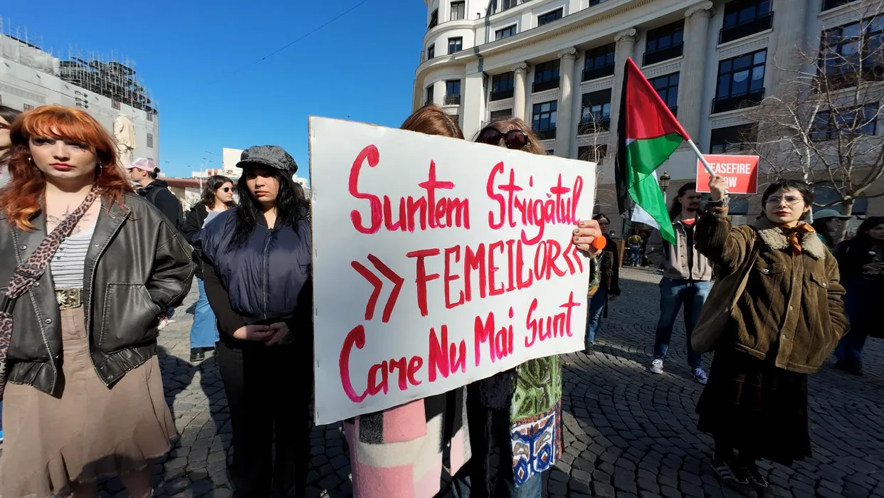 GALERIE FOTO: Manifestație în Piața Universității, de 8 martie: „Strigăm tare, strigăm toate, nu vrem austeritate!”