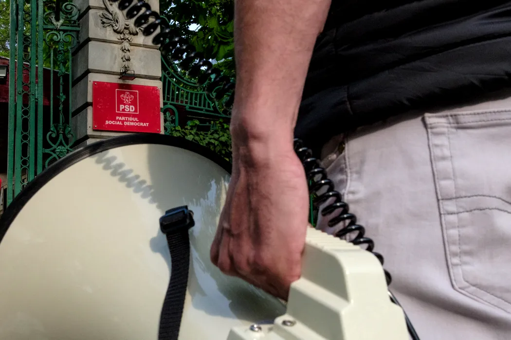 Cateva persoane protesteaza in fata Partidului Social Democrat. Acestia sunt nemultumiti de decizia PSD-ului de a iesi de la guvernare. Bucuresti, 20 aprilie 2026. ALEXANDRU NECHEZ / MEDIAFAX FOTO