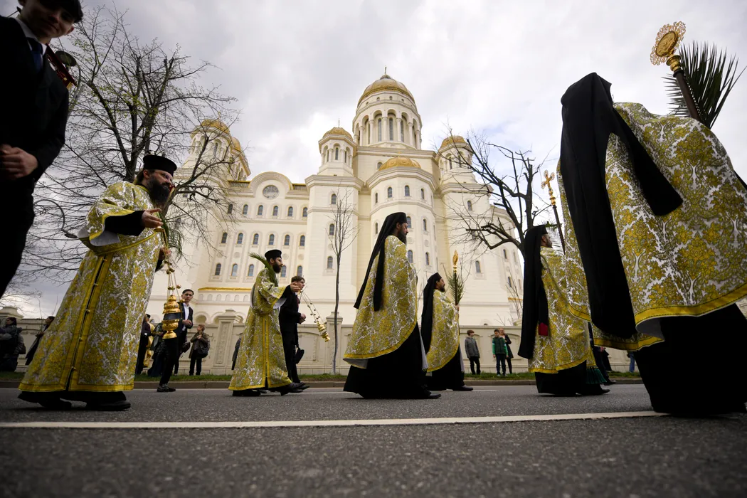 Ierarhi, preoti, monahi, monahii si credinciosi mireni din Capitala si din judetul Ilfov participa la pelerinajul organizat de Patriarhia Romana si Arhiepiscopia Bucurestilor cu ocazia sarbatoririi Floriilor, in Bucuresti, sambata, 4 aprilie 2026. Crestinii ortodocsi praznuiesc, duminica, Floriile, cea mai importanta sarbatoare care vesteste Pastele, rememorand intrarea lui Iisus in Ierusalim, unde a fost aclamat de locuitori si intampinat cu frunze de palmier. ALEXANDRU DOBRE/ MEDIAFAX FOTO