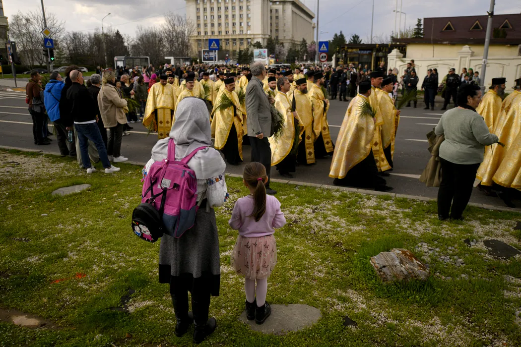 Ierarhi, preoti, monahi, monahii si credinciosi mireni din Capitala si din judetul Ilfov participa la pelerinajul organizat de Patriarhia Romana si Arhiepiscopia Bucurestilor cu ocazia sarbatoririi Floriilor, in Bucuresti, sambata, 4 aprilie 2026. Crestinii ortodocsi praznuiesc, duminica, Floriile, cea mai importanta sarbatoare care vesteste Pastele, rememorand intrarea lui Iisus in Ierusalim, unde a fost aclamat de locuitori si intampinat cu frunze de palmier. ALEXANDRU DOBRE/ MEDIAFAX FOTO