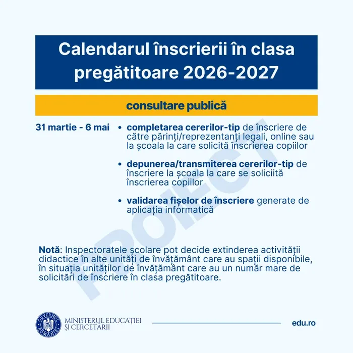 GALERIE FOTO: Ministerul Educației a lansat în consultare calendarul înscrierii în clasa pregătitoare pentru anul școlar 2026-2027