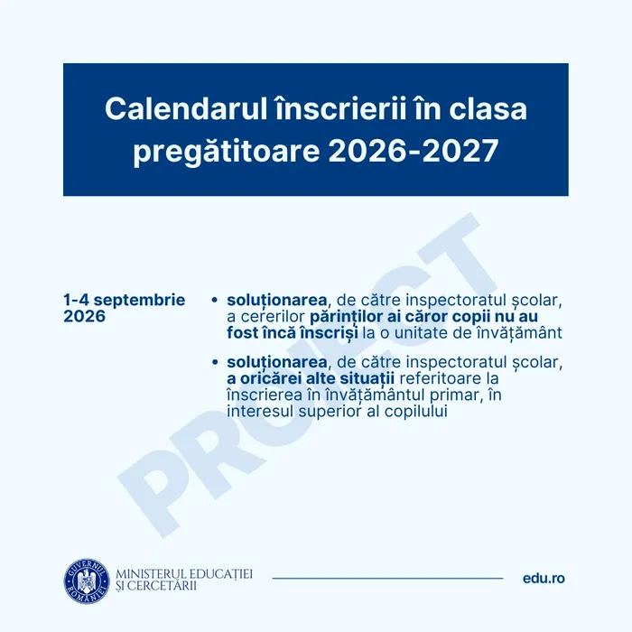 Ministerul Educației a lansat în consultare calendarul înscrierii în clasa pregătitoare pentru anul școlar 2026-2027