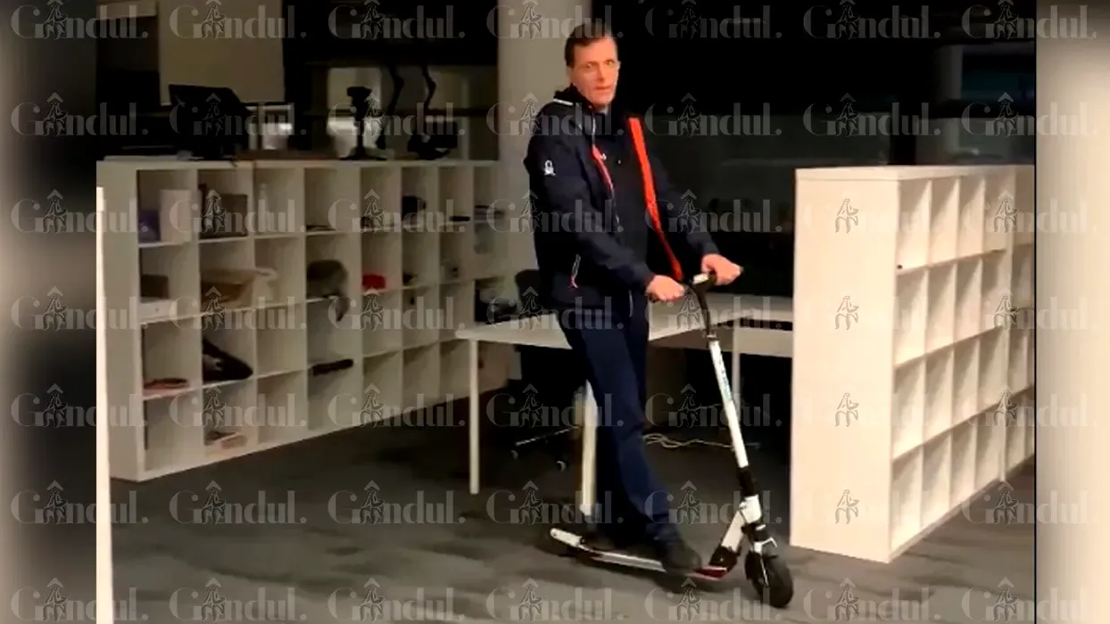 GALERIE FOTO: Ionuț Moșteanu, filmat pe trotinetă la USR, în fostul sediu de campanie al Elenei Lasconi