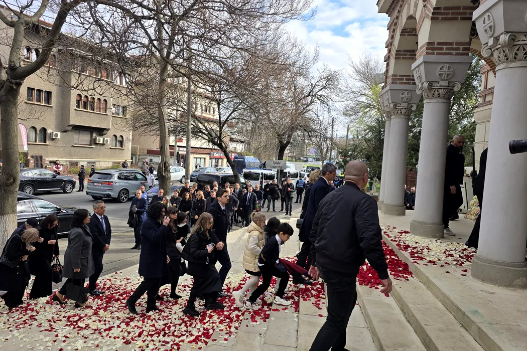 Sicriul cu trupul neinsufletit al fostului antrenor Mircea Lucescu ajunge la Biserica Sfantul Elefterie din Bucuresti, pe un covor de petale de flori, unde va avea loc slujba de inmormantare, vineri, 10 aprilie 2026. Mircea Lucescu a incetat din viata marti seara, la varsta de 80 de ani, la Spitalul Universitar de Urgenta din Bucuresti. STEFAN PETRE / GMN / MEDIAFAX FOTO