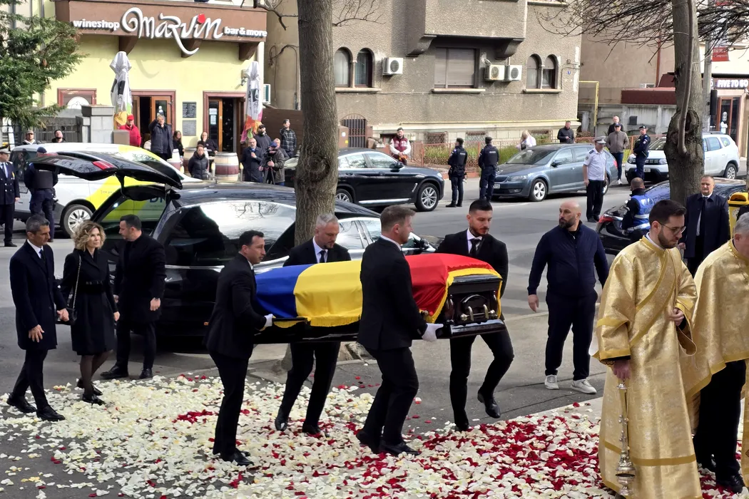 Sicriul cu trupul neinsufletit al fostului antrenor Mircea Lucescu ajunge la Biserica Sfantul Elefterie din Bucuresti, pe un covor de petale de flori, unde va avea loc slujba de inmormantare, vineri, 10 aprilie 2026. Mircea Lucescu a incetat din viata marti seara, la varsta de 80 de ani, la Spitalul Universitar de Urgenta din Bucuresti. STEFAN PETRE / GMN / MEDIAFAX FOTO