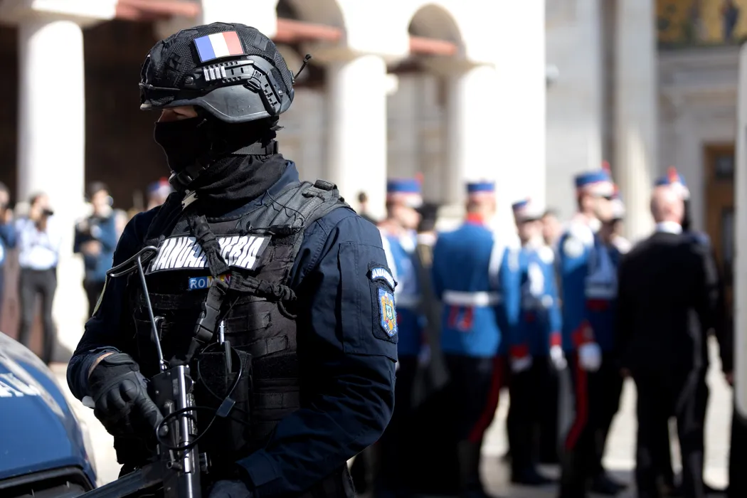 Un jandarm asigura ordinea in timpul sosirii Moastelor intregi ale Sfintei Imparatese Elena, mama Sfantului Imparat Constantin cel Mare, aduse in pelerinaj de la Venetia, la Catedrala Patriarhala, miercuri, 30 aprilie 2025. ALEXANDRA PANDREA/GMN/MEDIAFAX FOTO