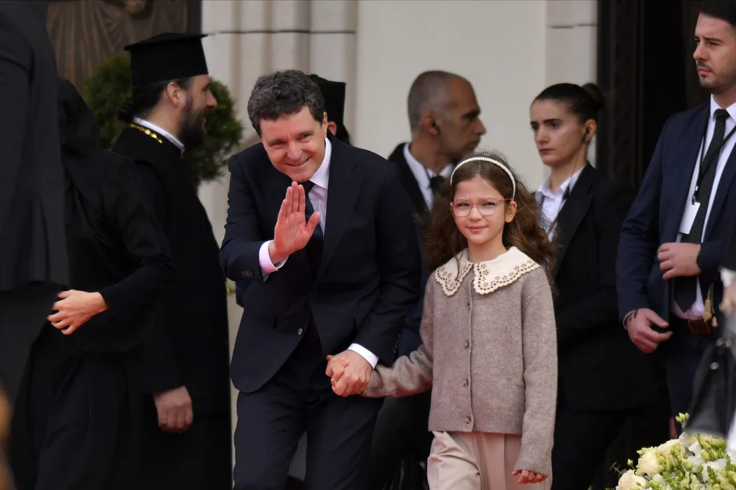 Presedintele Romaniei, Nicusor Dan, alaturi de fiica sa, Aheea, paraseste Catedrala Nationala din Bucuresti, dupa ce a participat la slujba de sfintire a picturii lacasului de cult, duminica, 25 octombrie 2025. ALEXANDRU DOBRE / MEDIAFAX FOTO