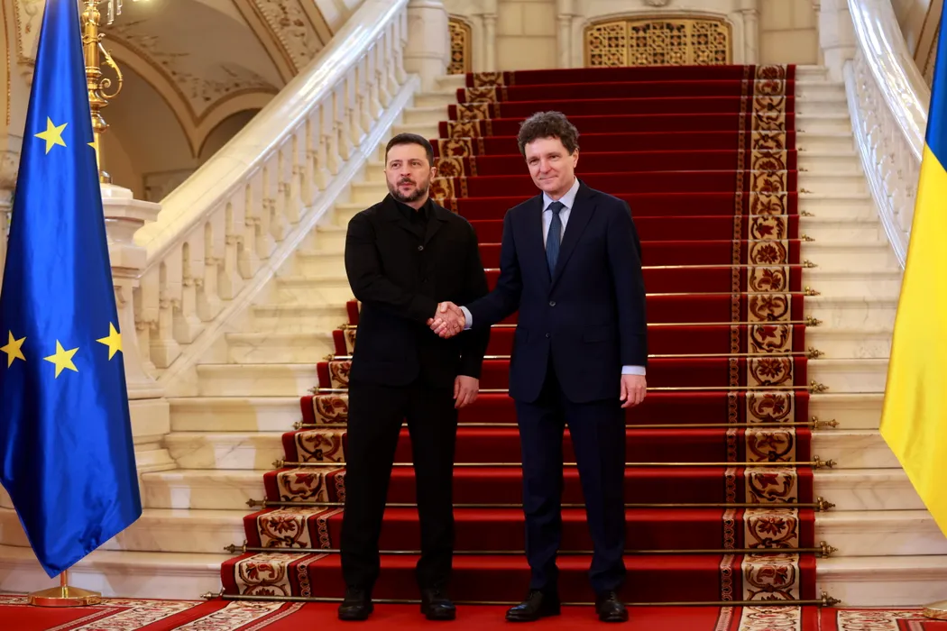 Primirea presedintelui ucrainean, Volodimir Zelenski, de catre presedintele Romaniei, Nicusor Dan, la Palatul Cotroceni, in Bucuresti, joi, 12 martie 2026. MIHAI POP / GMN / MEDIAFAX FOTO