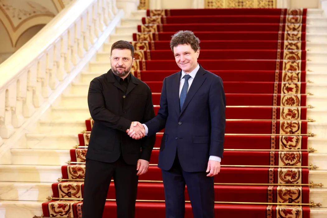 Primirea presedintelui ucrainean, Volodimir Zelenski, de catre presedintele Romaniei, Nicusor Dan, la Palatul Cotroceni, in Bucuresti, joi, 12 martie 2026. MIHAI POP / GMN / MEDIAFAX FOTO