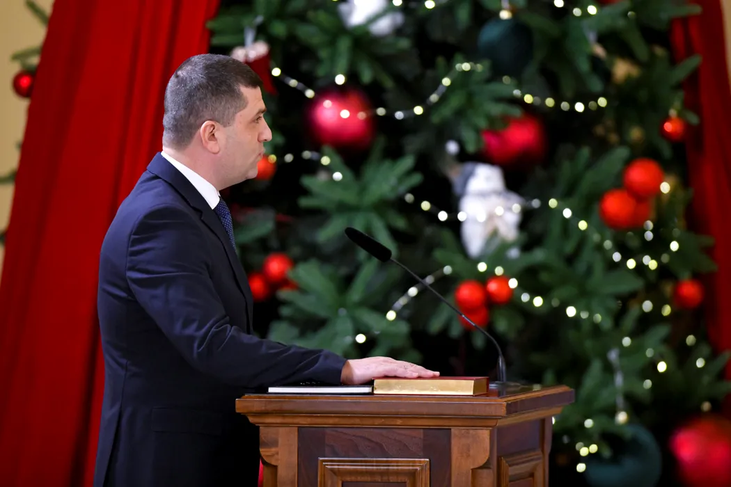 Radu Miruta, ministrul Apararii Nationale si vicepremier, depune juramantul de investitura in functie, in prezenta presedintelui Nicusor Dan, in cadrul unei ceremonii desfasurate la Palatul Cotroceni, marti, 23 decembrie 2025. ALEXANDRU DOBRE / MEDIAFAX FOTO
