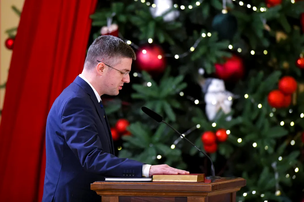 Irineu Darau, ministrul Economiei, Digitalizarii, Antreprenoriatului si Turismului, depune juramantul de investitura in functie, in prezenta presedintelui Nicusor Dan, in cadrul unei ceremonii desfasurate la Palatul Cotroceni, marti, 23 decembrie 2025. ALEXANDRU DOBRE / MEDIAFAX FOTO