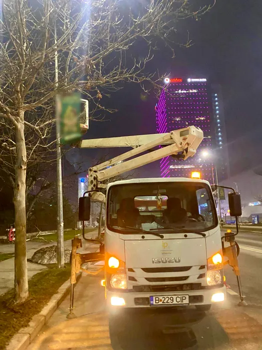 Operațiune nocturnă în București: zeci de bannere publicitare, demontate de pe stâlpi