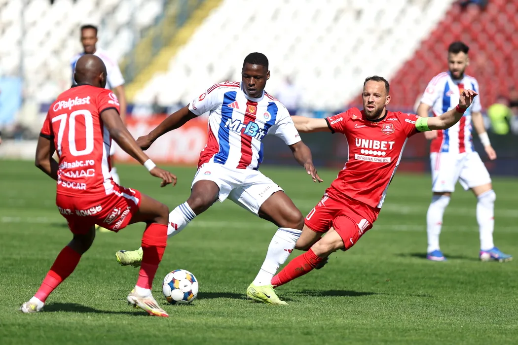 Meciul de fotbal dintre Otelul Galati si AFC Hermannstadt, din etapa a III-a a play-out-ului Superligii, disputat pe stadionul Otelul din Galati, sambata, 4 aprilie 2026. SORIN PANA / MEDIAFAX FOTO