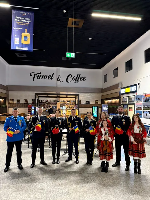 Pasagerii care au ajuns azi în Aeroportul Bacău au fost întâmpinați cu „Deșteaptă-te, române”