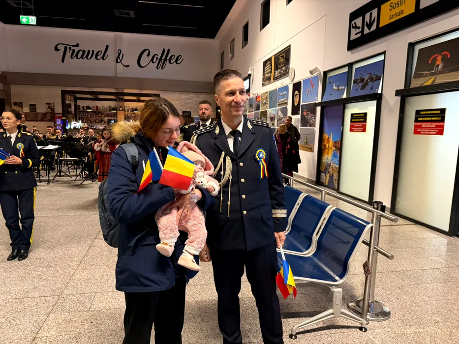 Pasagerii care au ajuns azi în Aeroportul Bacău au fost întâmpinați cu „Deșteaptă-te, române”