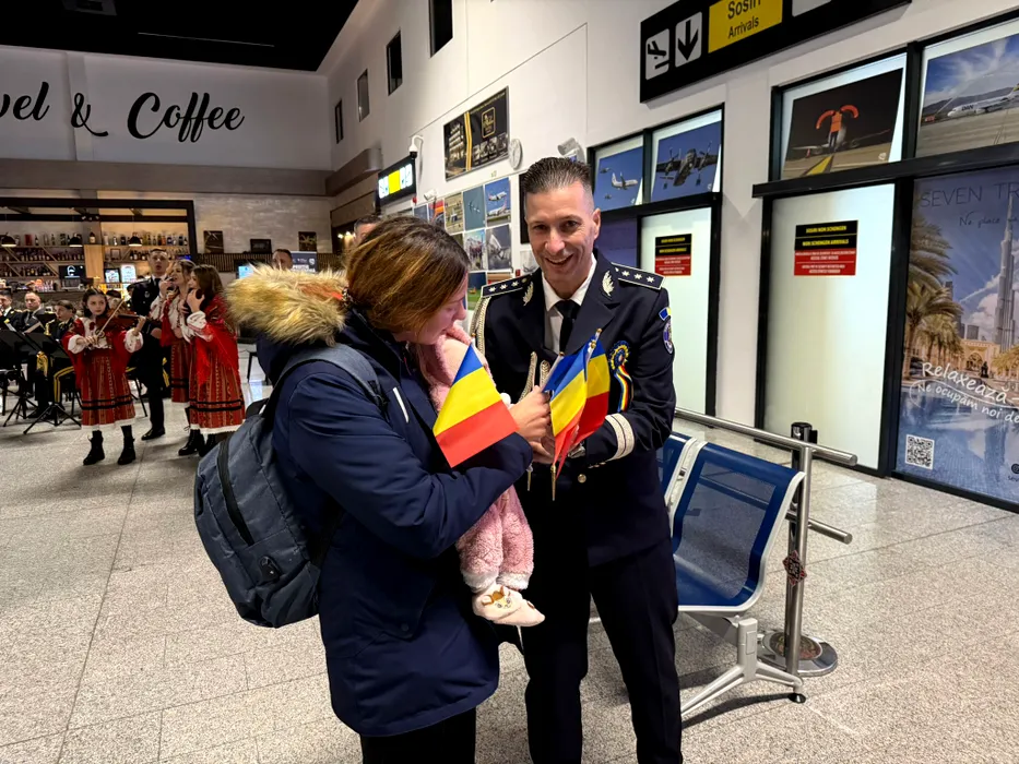 Pasagerii care au ajuns azi în Aeroportul Bacău au fost întâmpinați cu „Deșteaptă-te, române”
