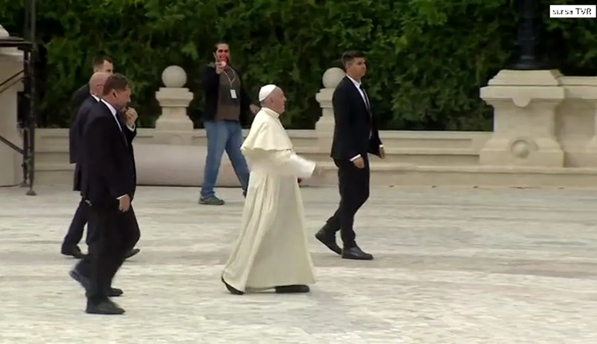 Prima baie de mulţime: Papa Francisc a coborât din maşină pentru a da mâna cu oamenii, la plecarea de la Palatul Cotroceni | FOTO