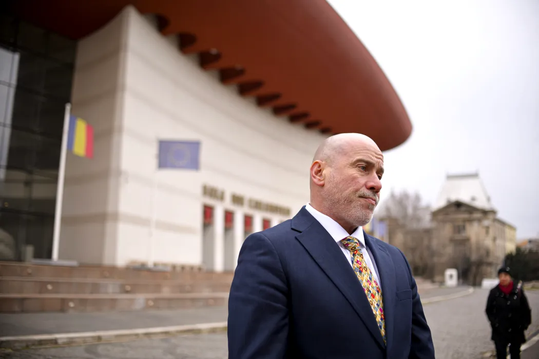 Andras Demeter, ministrul Culturii din Romania, da declaratii la protestul actorilor Teatrului National „I.L. Caragiale”, din fata institutiei, fata de aplicarea unui proiect-pilot transmis de Ministerul Culturii privind organizarea unitara si evidenta timpului de munca, in Bucuresti, marti 10 februarie 2026. ALEXANDRU DOBRE / MEDIAFAX FOTO