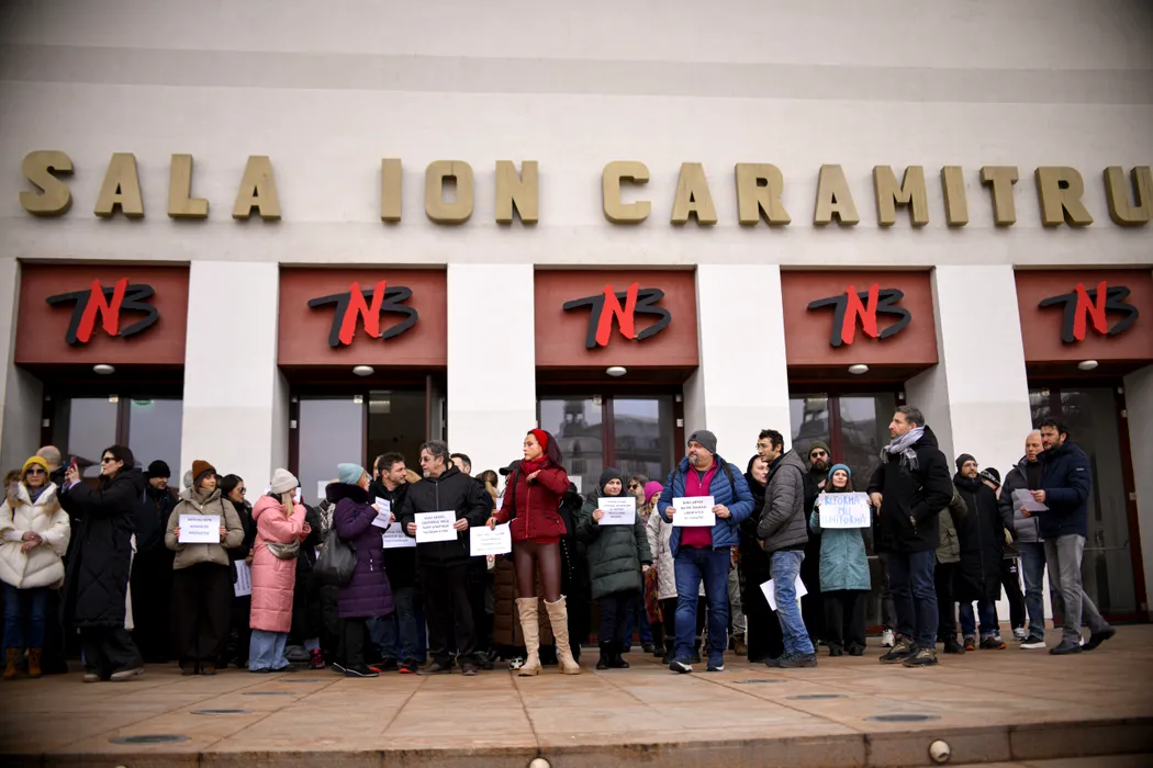 Actorii Teatrului National „I.L. Caragiale” protesteaza, in fata institutiei, fata de aplicarea unui proiect-pilot transmis de Ministerul Culturii privind organizarea unitara si evidenta timpului de munca, in Bucuresti, marti 10 februarie 2026. ALEXANDRU DOBRE / MEDIAFAX FOTO