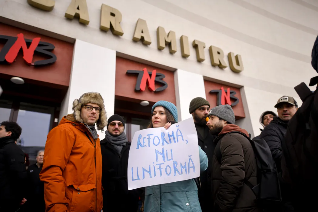 Actorii Teatrului National „I.L. Caragiale” protesteaza, in fata institutiei, fata de aplicarea unui proiect-pilot transmis de Ministerul Culturii privind organizarea unitara si evidenta timpului de munca, in Bucuresti, marti 10 februarie 2026. ALEXANDRU DOBRE / MEDIAFAX FOTO