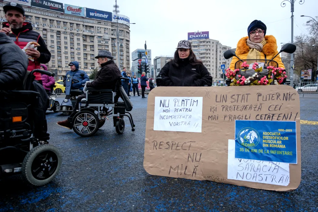 GALERIE FOTO: Protest al persoanelor cu dizabilități în Piața Victoriei. Ce solicită participanții