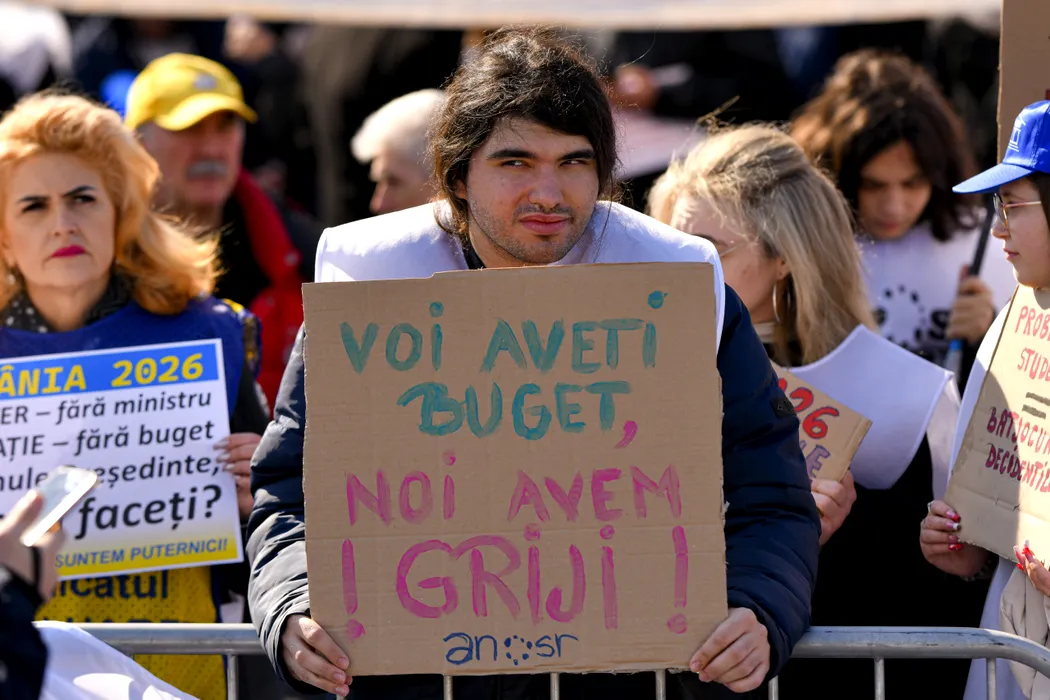 Protest al sindicatelor din Educatie, organizat la Palatul Cotroceni, impotriva masurilor fiscale adoptate de Guvern, in Bucuresti, miercuri 25 februarie 2026. ALEXANDRU DOBRE / MEDIAFAX FOTO