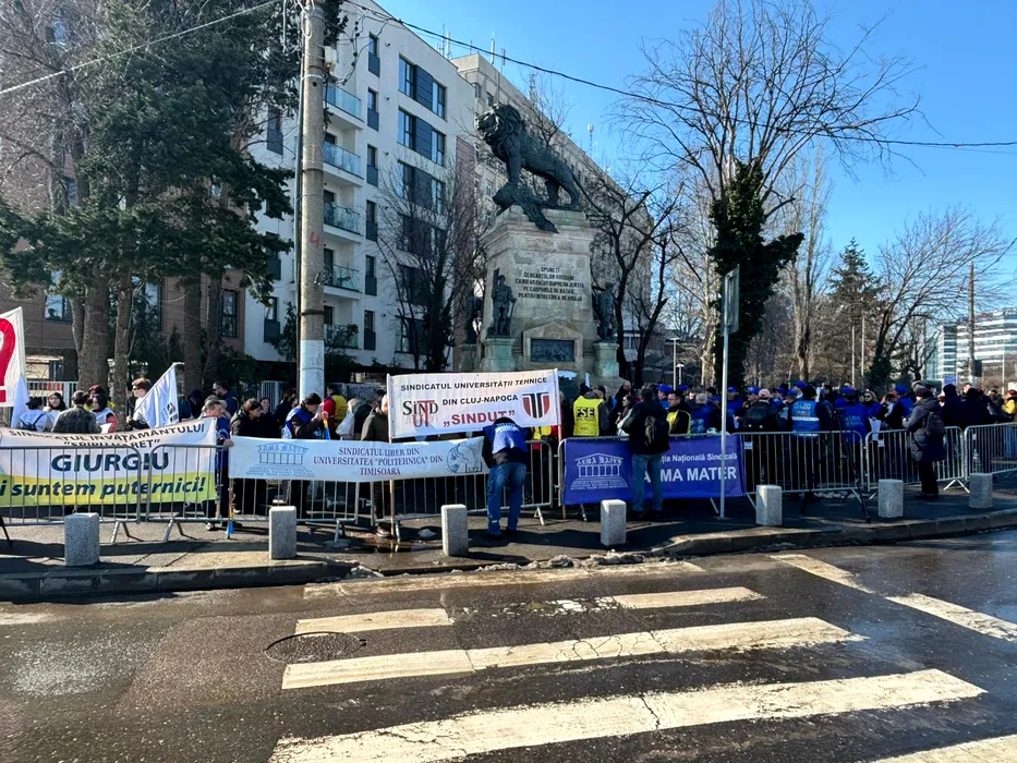 Protest al sindicatelor din Educație, chiar acum la Palatul Cotroceni: „Vă e frică de un popor educat?” / ANOSR participă