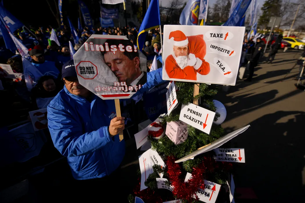 Sindicalisti din patru confederatii ies in strada la Palatul Cotroceni, solicitand Presedintiei implicarea intr-o mediere intre Guvern si partenerii sociali, pe fondul tensiunilor generate de masurile de austeritate si nivelul salariului minim pe economie, in Bucuresti, joi, 18 decembrie 2025. ALEXANDRU DOBRE / MEDIAFAX FOTO