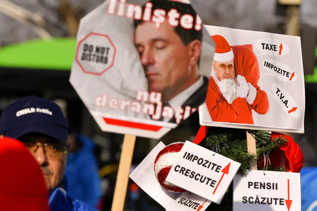 Sindicalisti din patru confederatii ies in strada la Palatul Cotroceni, solicitand Presedintiei implicarea intr-o mediere intre Guvern si partenerii sociali, pe fondul tensiunilor generate de masurile de austeritate si nivelul salariului minim pe economie, in Bucuresti, joi, 18 decembrie 2025. ALEXANDRU DOBRE / MEDIAFAX FOTO