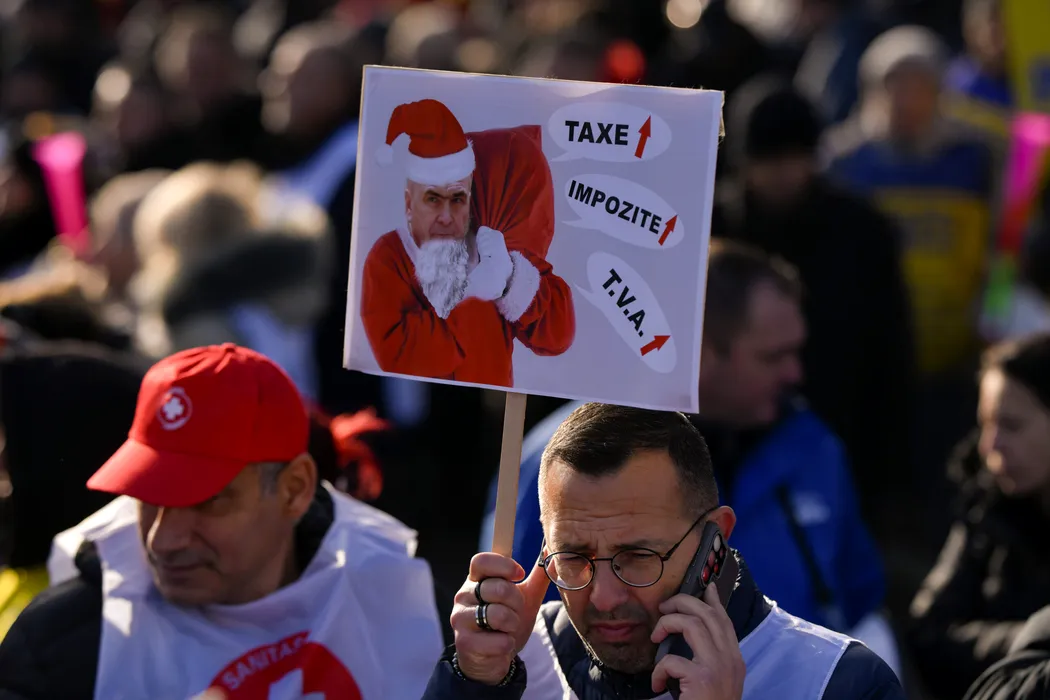 Sindicalisti din patru confederatii ies in strada la Palatul Cotroceni, solicitand Presedintiei implicarea intr-o mediere intre Guvern si partenerii sociali, pe fondul tensiunilor generate de masurile de austeritate si nivelul salariului minim pe economie, in Bucuresti, joi, 18 decembrie 2025. ALEXANDRU DOBRE / MEDIAFAX FOTO
