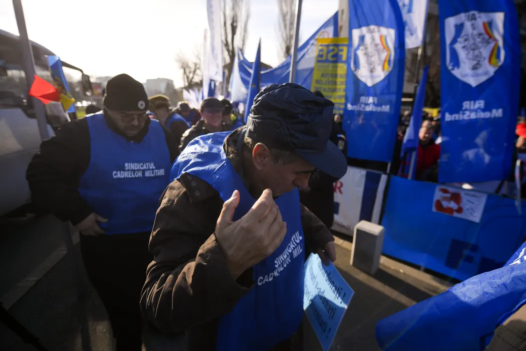 Sindicalisti din patru confederatii ies in strada la Palatul Cotroceni, solicitand Presedintiei implicarea intr-o mediere intre Guvern si partenerii sociali, pe fondul tensiunilor generate de masurile de austeritate si nivelul salariului minim pe economie, in Bucuresti, joi, 18 decembrie 2025. ALEXANDRU DOBRE / MEDIAFAX FOTO