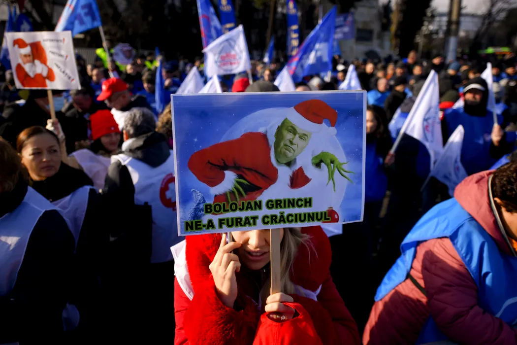 Sindicalisti din patru confederatii ies in strada la Palatul Cotroceni, solicitand Presedintiei implicarea intr-o mediere intre Guvern si partenerii sociali, pe fondul tensiunilor generate de masurile de austeritate si nivelul salariului minim pe economie, in Bucuresti, joi, 18 decembrie 2025. ALEXANDRU DOBRE / MEDIAFAX FOTO